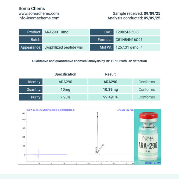 - What We Offer: Our ARA 290 peptide is lab-tested for purity and effectiveness, ensuring you receive a top-tier product.
