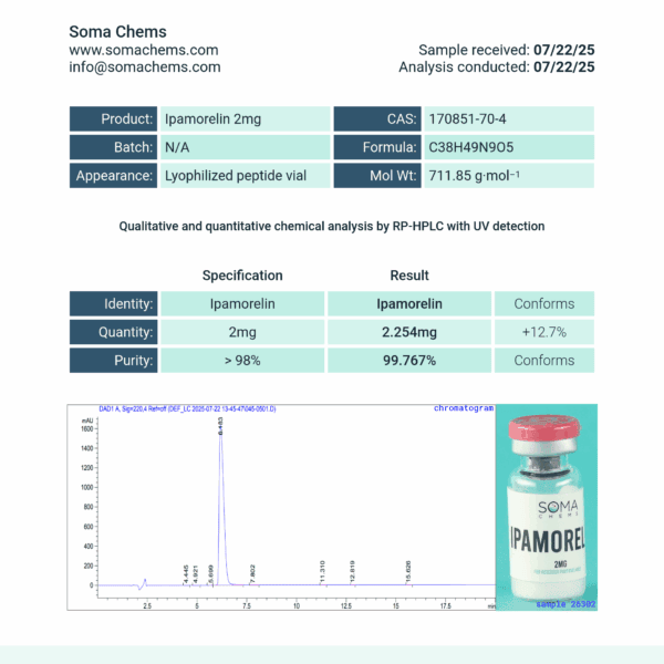How can you be sure the Ipamorelin you’re buying is legitimate? The answer lies in third-party lab testing. Reputable vendors will always provide a Certificate of Analysis (COA) for each product batch. This document details the results of tests like HPLC (High-Performance Liquid Chromatography), which confirms the peptide’s purity and identity.